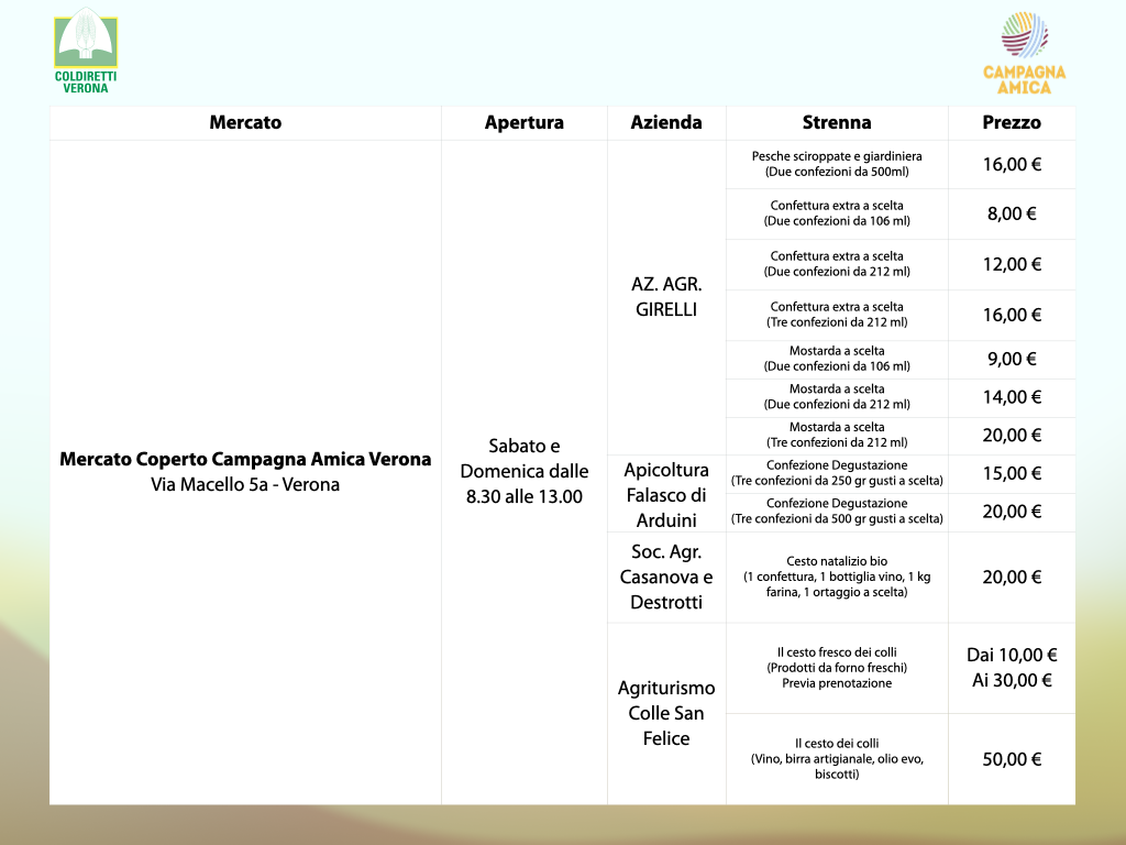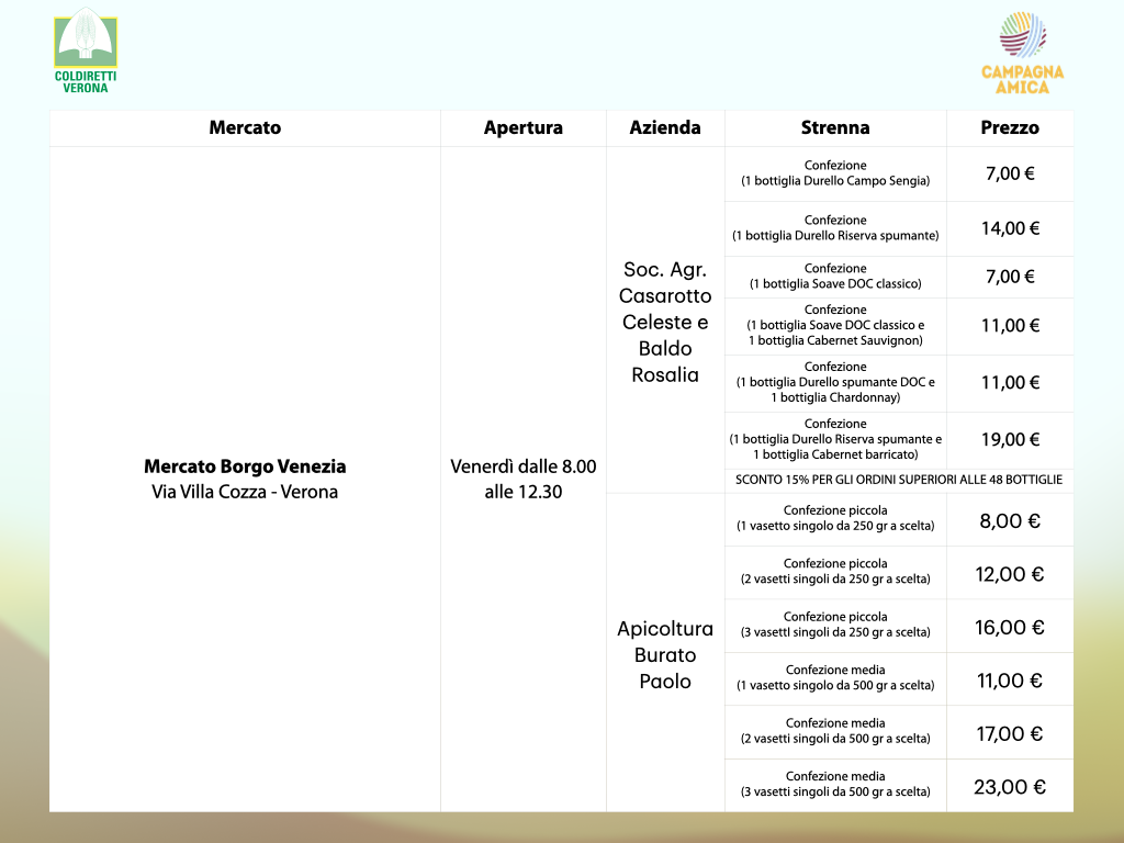 Scopri tutti i nostri mercati: https://verona.campagnamica.it/